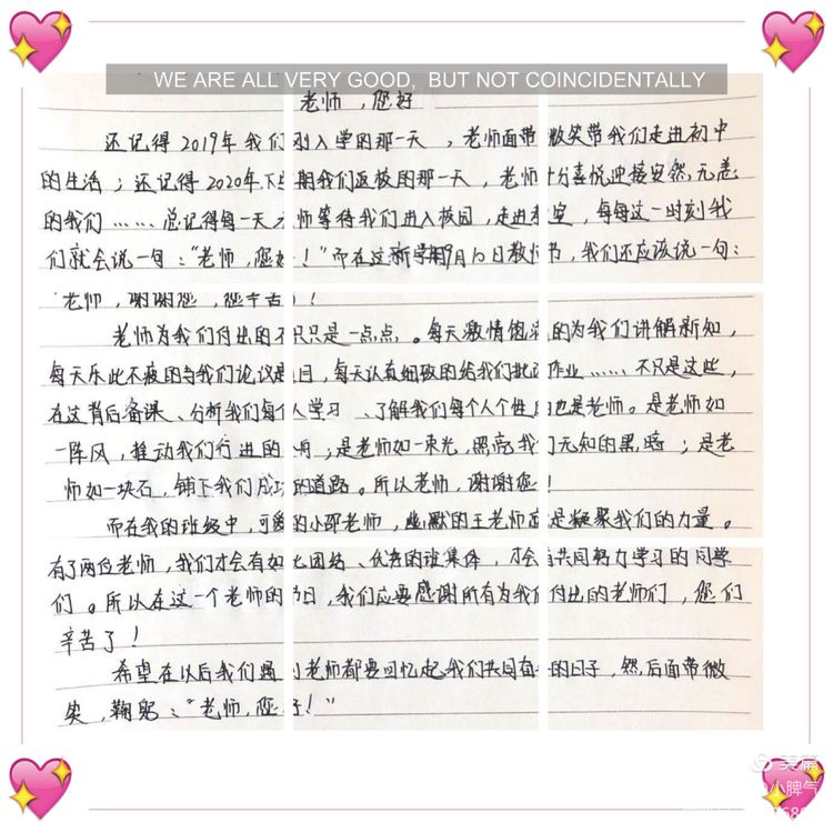 一张张充满爱意的卡片,架起了师生沟通的桥梁。简单朴实的话语,无不透露出学生对老师浓浓的敬意。